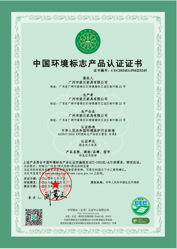 在产品认证方面,班兰的多款产品均通过了权威的环保与品质认证,如中国环境标志产品认证(十环认证)、ISO双体系认证(ISO9001质量管理体系认证和ISO14001环境管理体系认证)。其中,ISO9001要求产品从设计到生产的每个环节都符合国际质量标准;ISO14001则证明班兰在生产过程中严格遵循环保规范。这些认证不仅是对班兰产品环保性能与品质的有力证明,也让消费者在选择时更加放心。