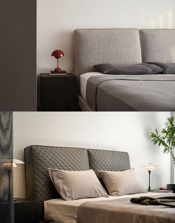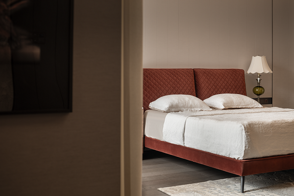 卧室是休憩的港湾,而无忧床则是这个港湾中最安心的“依靠”。其设计灵感源自“怀抱”的意象,床屏仿佛两个鹅羽绒大抱枕的夸张变形,与床垫一体联通,传递出柔软而完整的包覆感。