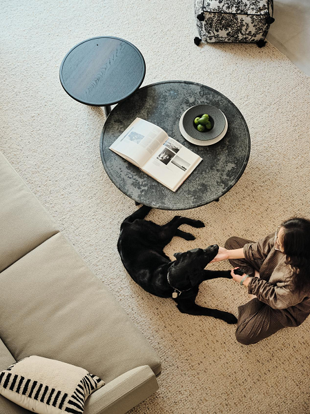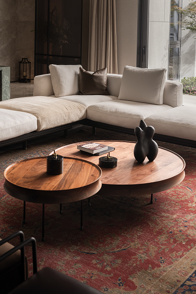 班布几的设计灵感源于中国竹节,通过变形与提炼,塑造出极具东方美感的结构语言。厚重几面与纤细金属腿形成鲜明对比,演绎“重与轻”“拙与巧”的哲学意趣,兼具艺术张力与实用功能。不论是随手放置的书籍、咖啡杯,还是精心搭配的装饰,班布几都能妥帖承载,默默陪伴日常生活的每一个片段。