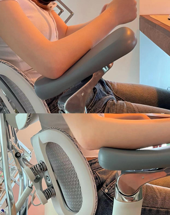 ·椅背高度多档调节:适配多人背部曲线,提升共用友好度;腰枕毫米级前后(20mm)调节,能精准支撑,腰部不落空。比如日常前倾办公,可通过旋转旋钮精准“推近” 腰枕,让其刚好贴合前倾时腰部的突出位置,确保腰部始终处于被支撑的状态,分散腰椎压力。
