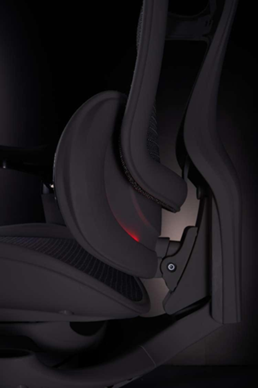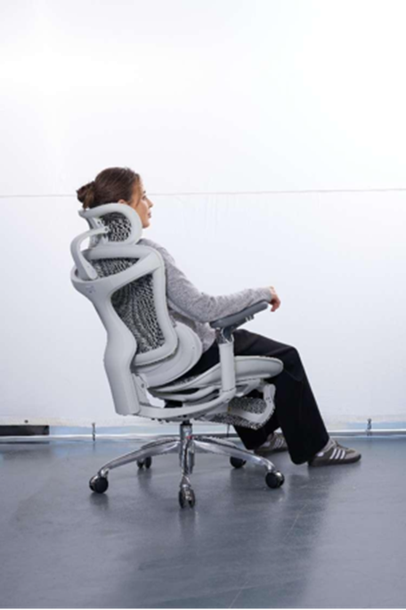 ·动态追踪腰背系统:腰背采用联动结构设计,可随前倾、正坐、后仰自动贴合脊柱曲线