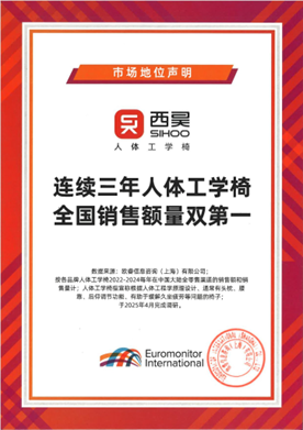 在这一背景下,西昊以国家标准制定者的角色回应市场需求。作为参与《健康家居的人类工效学要求 第3部分:办公桌椅》国家标准起草的企业之一,西昊将人体工程学的研究成果转化为可量化、可落地的办公椅结构方案。同时,根据欧睿国际(Euromonitor International)数据显示,西昊已连续三年在中国大陆人体工学椅品类中实现零售渠道销售额与销量双第一,这一结果基于 2022–2024 年度全国市场统计,覆盖主流电商及核心零售渠道。