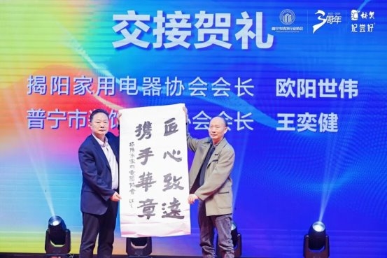 揭阳市家用电器协会、普宁市青年商会向协会赠送贺礼,象征兄弟协会间的深厚情谊。主持人还现场宣读了来自多家友好协会及单位的贺信,字里行间充满了对普宁市装饰行业协会的美好祝福。