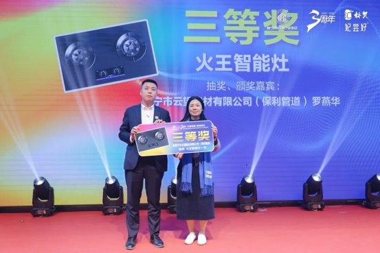 三等奖:普宁市云望建材有限公司与广东宏栩科技有限公司分别提供的智能灶与智能锁,由赞助商代表罗燕华、张泽长抽出。