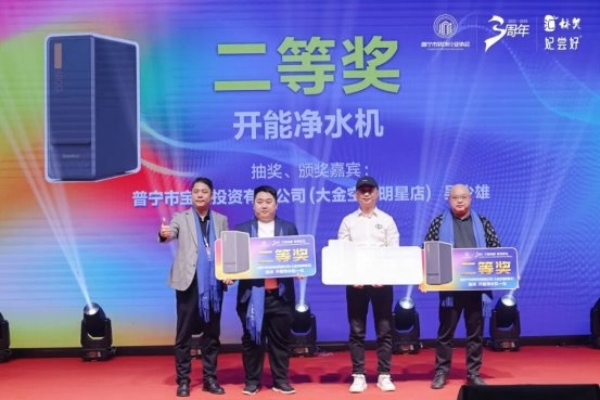 二等奖:普宁市宝联投资有限公司总经理吴少雄先生提供的三台高端净水器,引得现场阵阵欢呼。